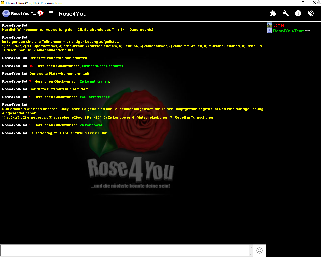 Die Aufgabe #135 lief vom 07.02.2016 - 21:42:51 Uhr bis zum 14.02.2016 - 00:00:00 Uhr und hatte 10 Einsendungen.