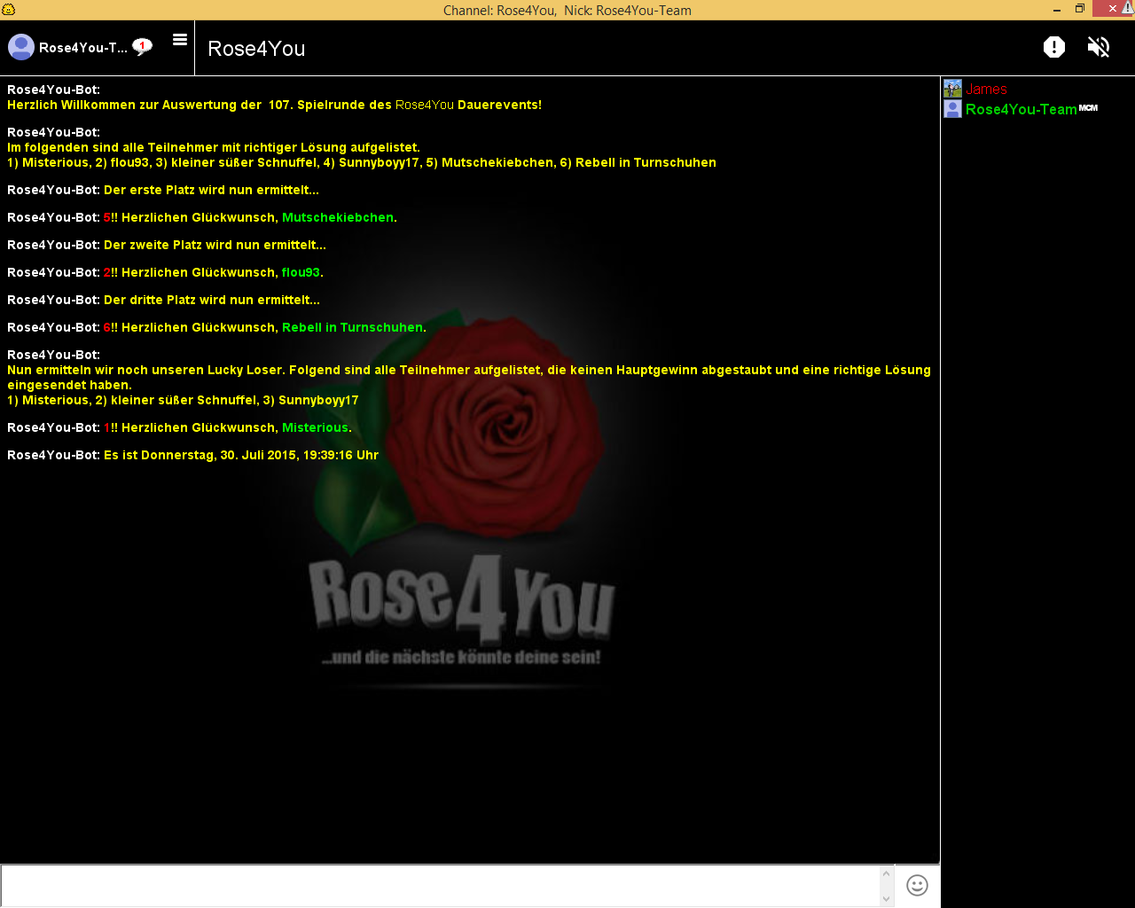 Die Aufgabe #108 lief vom 26.07.2015 - 22:46:17 Uhr bis zum 02.08.2015 - 00:00:00 Uhr und hatte 15 Einsendungen.