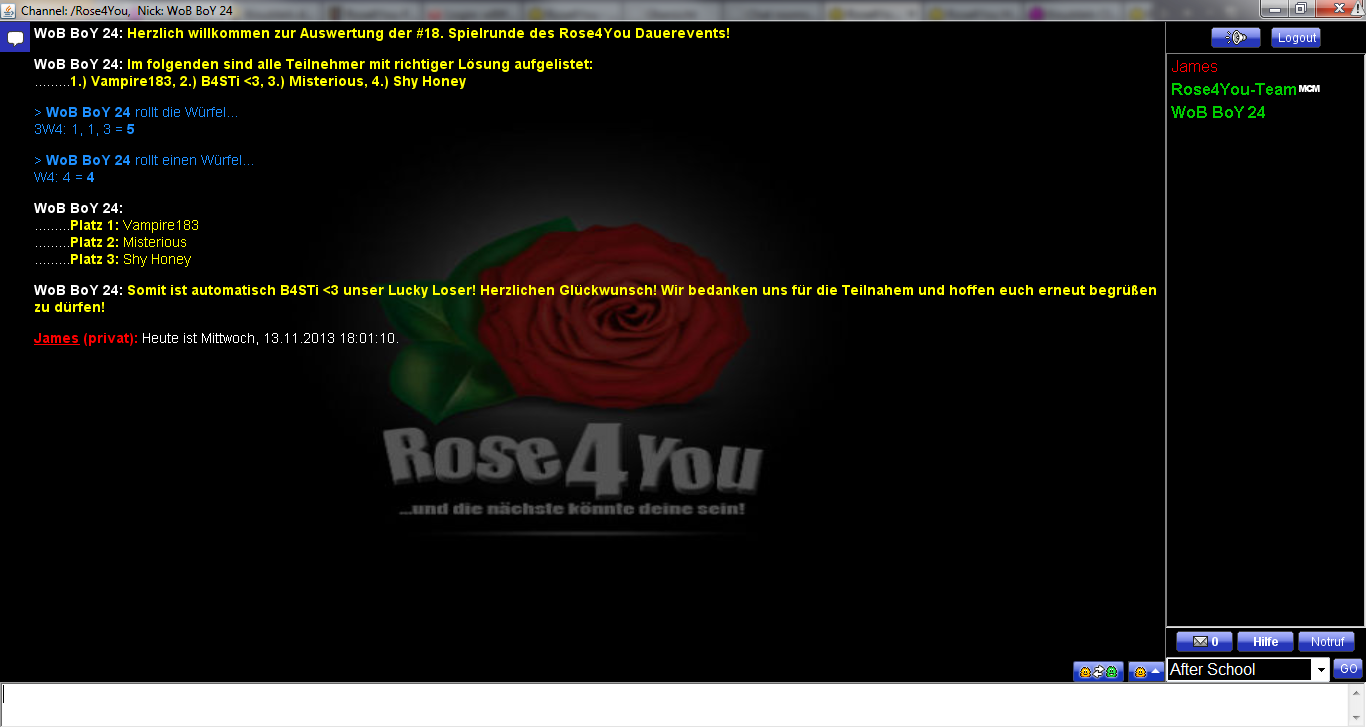 Die Aufgabe #18 lief vom 03.11.2013 - 00:49:26 Uhr bis zum 10.11.2013 - 00:00:00 Uhr und hatte 6 Einsendungen.