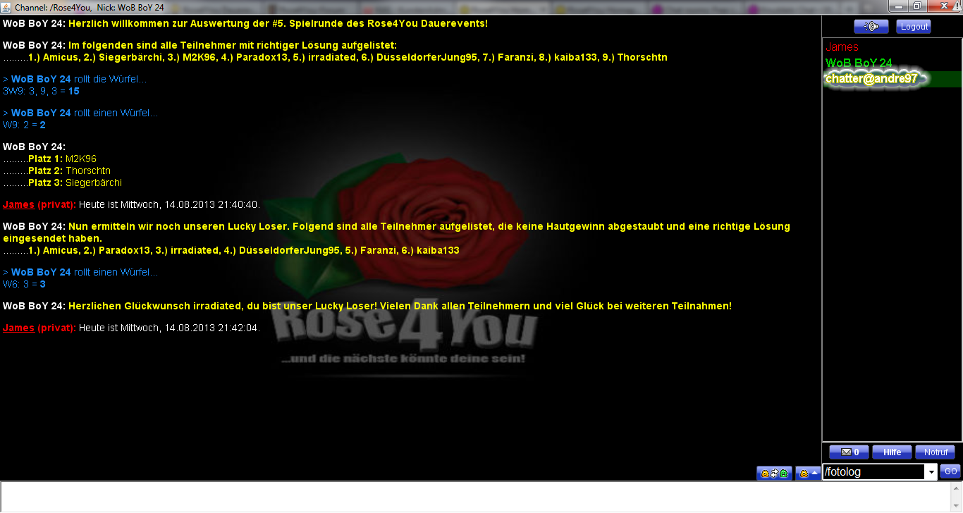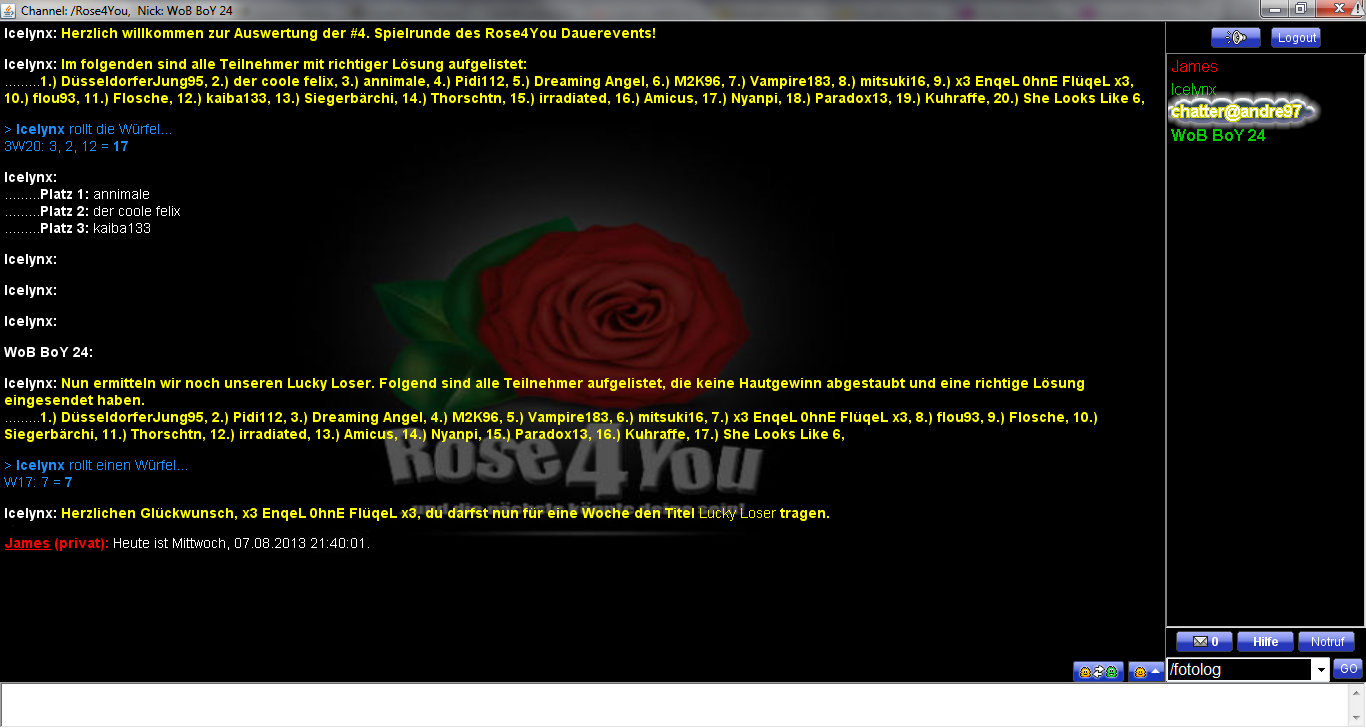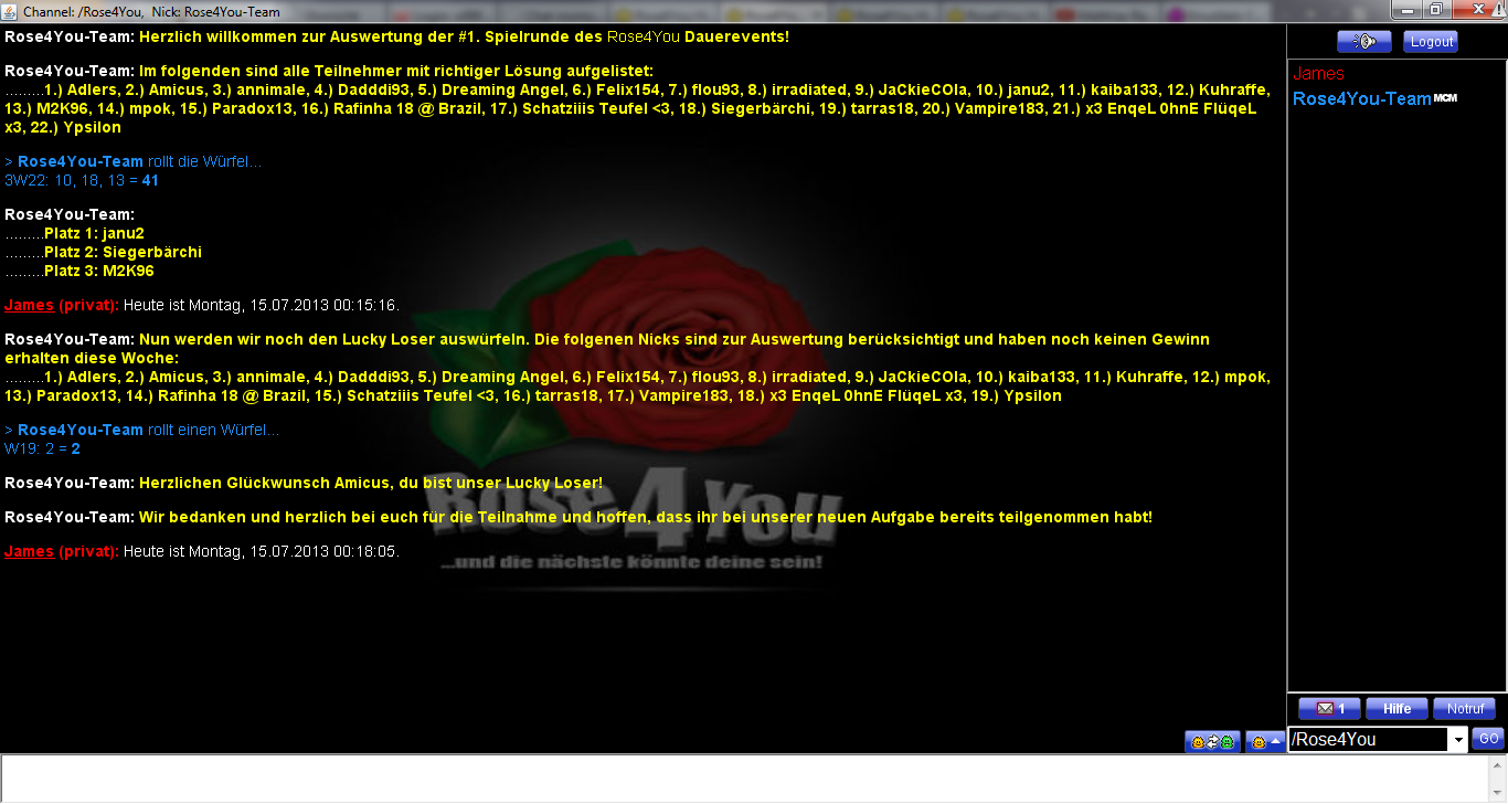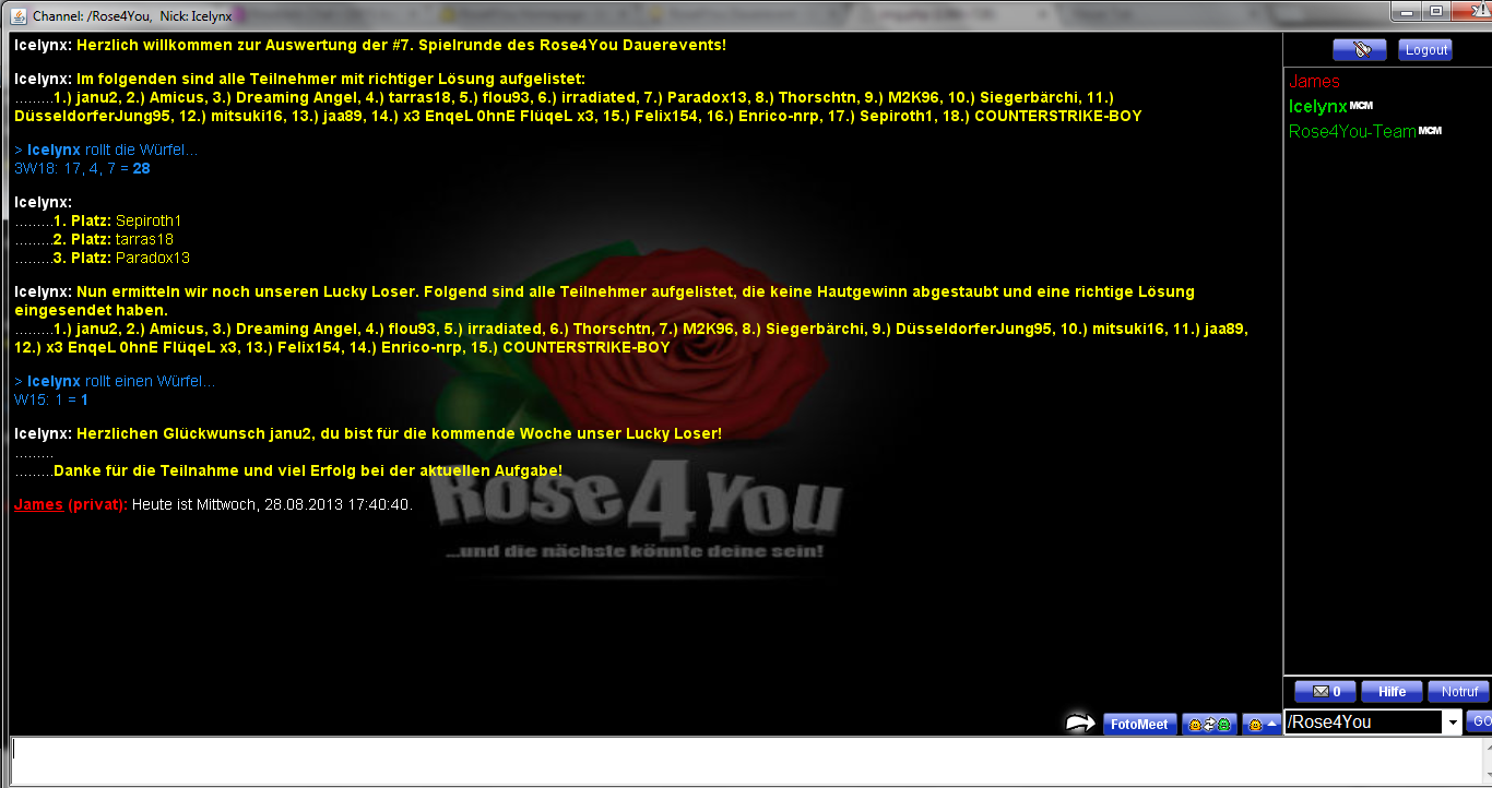 Alle eingesendeten Screens, auf denen der Empfang einer Rose zu sehen ist, werden als richtig gewertet.